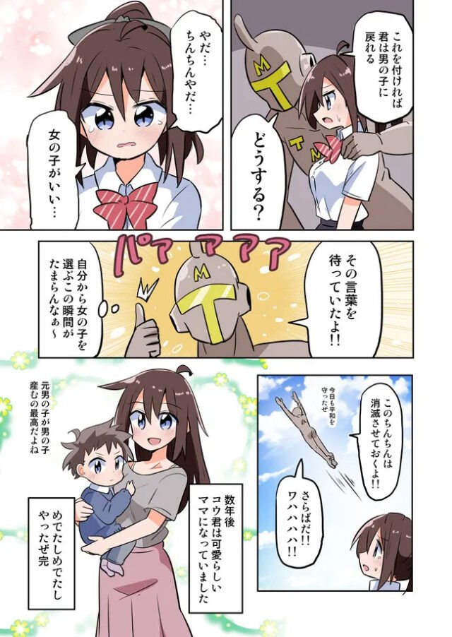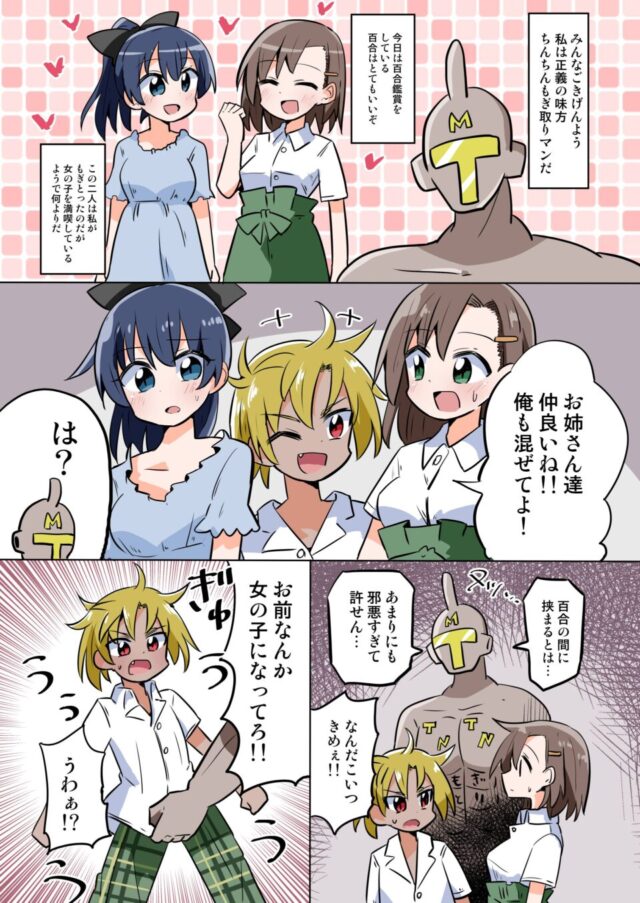 これよく考えたらちんちんもぎ取りマンって、本人の同意もなく無理やり女にさせて本人の意識変えてるから滅茶苦茶邪悪な行為だよね。