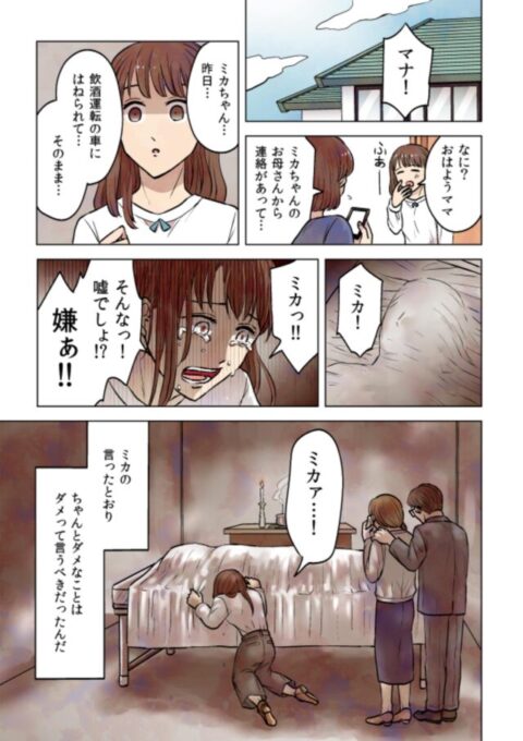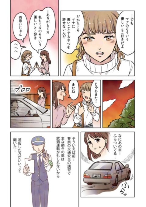 これ運転してたのは最初の痴漢で注意された腹いせに飲みながらミカを轢き殺したの方がもっとマナを傷つられたんじゃないかなあ