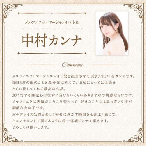ライトノベル「悪食令嬢と狂血公爵~その魔物、私が美味しくいただきます!~」テレビアニメ化 “悪食令嬢”役は中村カンナ