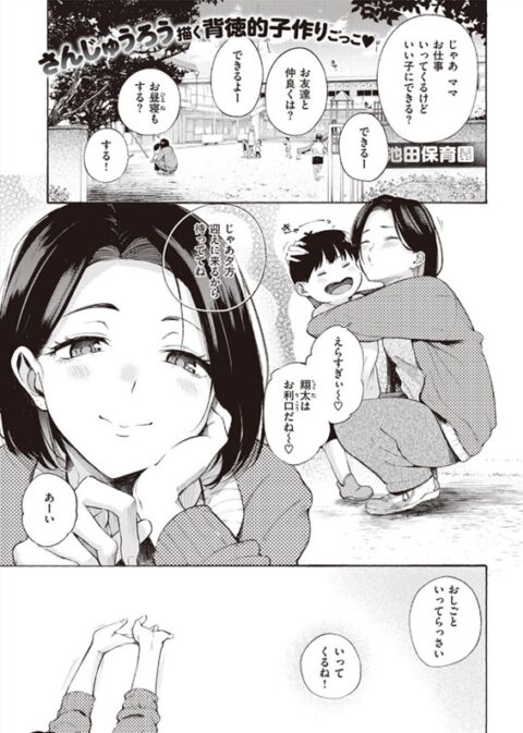 抱かれるたびに忘れていた「めす」としての本能が目覚めていき、嘘をついて子供を母親のところに預ける時に子供に向けた笑顔はちょっとしたホラーや(この時に我慢できずに指で自慰しているのがエッチや)
