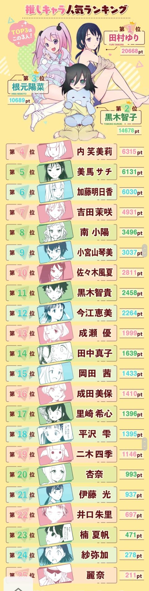 主人公のいのりを差し置いてヒロインの司先生が1位やったはずや