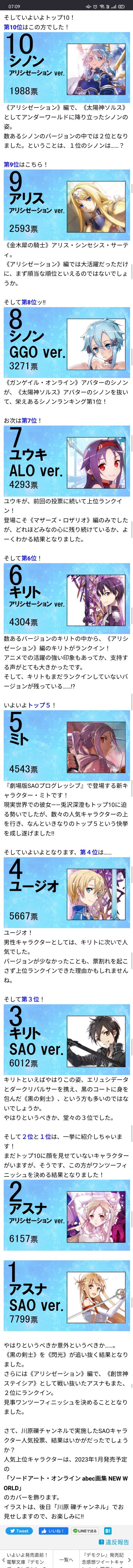 SAOの公式人気投票これや