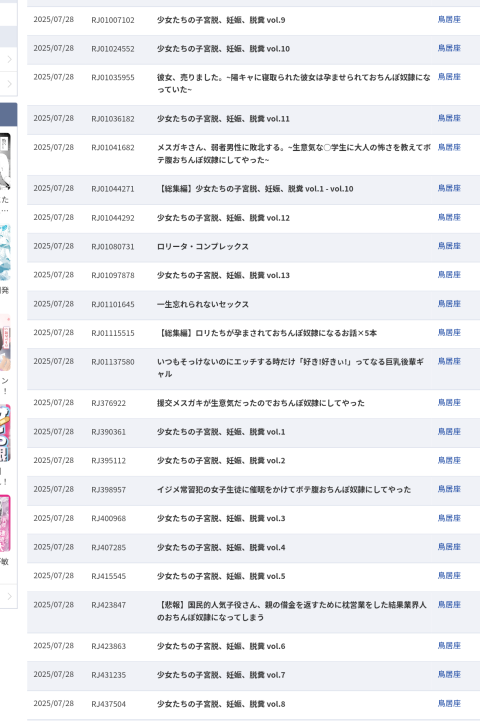 この上の画像は7月28日にdlsiteで発売終了した作品一覧や