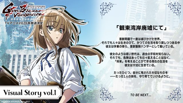 新たに解禁されたキービジュアルは、荒廃した街でどこかを見つめて佇む一人の少女の姿が描かれており、手には銃を、そして背後には何らかの死骸も…。特報映像では、シリーズ主人公の高町なのはのボイスに加え、「この世界で生きていく。繋いだ手が、離れずいられるように。」と、力強い覚悟も伺える“少女の声”を聴くことができる。気になる新キャラクター&キャストの情報は後日発表される。