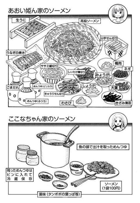 あおいとここなちゃんの家でのそうめんの比較すき