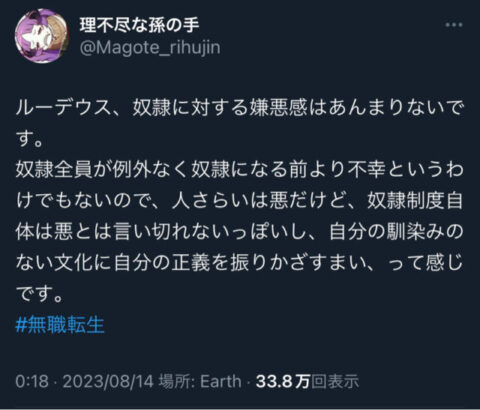 あの世界の奴隷文化にドン引きしないんか主人公