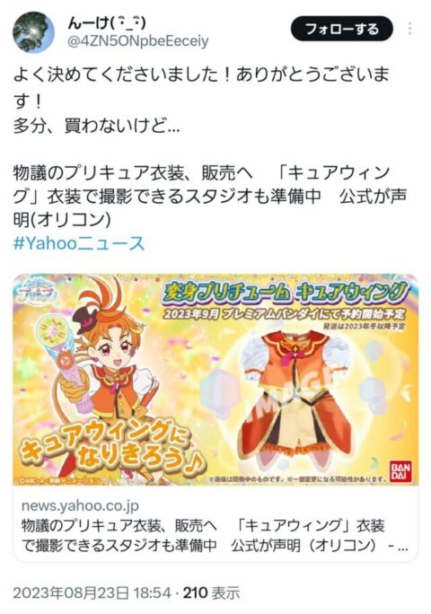あれだけ騒いでおいて文句言ってた奴らキュアウィングのプリチューム買わないの草
