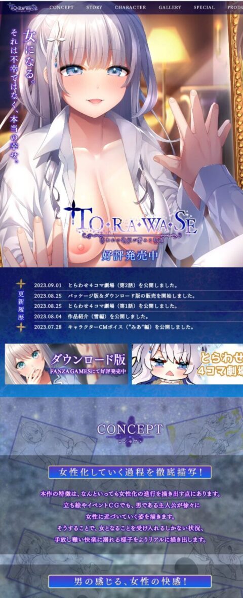 徐々に女体化していく様子とか婚約者との関係とかあっちの世界でのドチャクソエロシーンとか色々あるよ