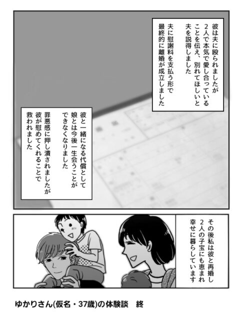 ちなみにこの後夫妻娘間男の4者面談で托卵をバラされて娘から結婚式に来ないでほしいと言われて脳破壊されすぎた夫は