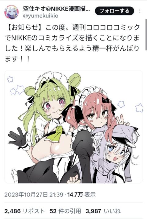 【画像】コロコロコミックさん、ウマ娘に続き大人気ソシャゲ「勝利の女神NIKKE」のコミカライズ連載開始