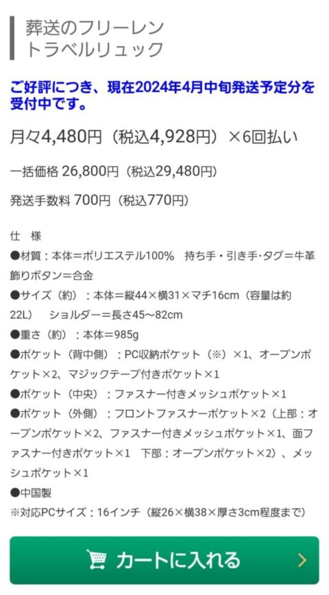 リュックよりはよっぽど売れるわ